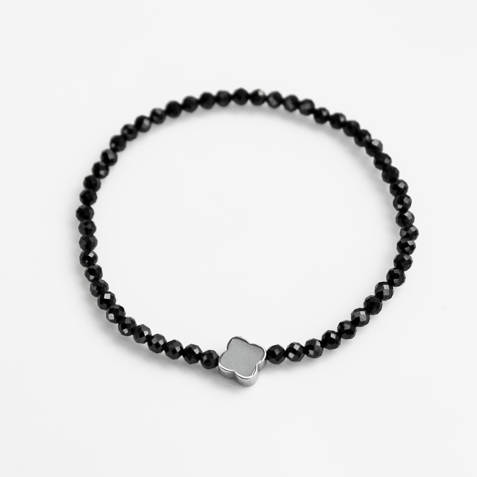 Браслет ручной работы из натуральной шпинели с огранкой, вставка из натурального гематита.