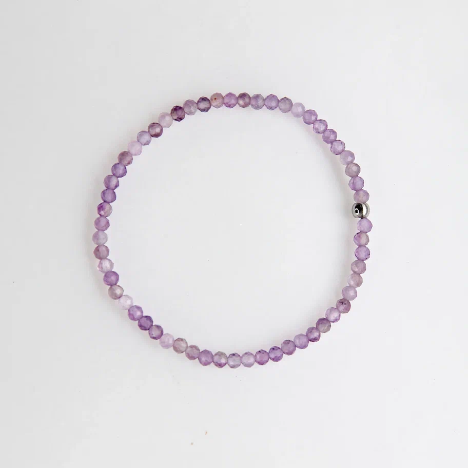 Браслет ручной работы из натурального аметиста с огранкой, вставка из ювелирной стали (не вызывает аллергии, не меняет свои свойства под воздействием соленой воды и солнца).