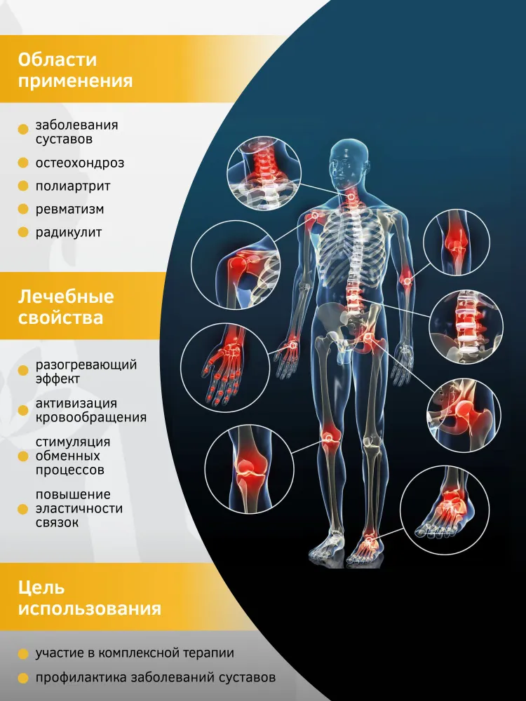Это средство будет эффективно при мышечных травмах, растяжениях, гематомах, ушибах. Его также можно применять для снятия отеков и уменьшения болевых симптомах при заболеваниях суставов.